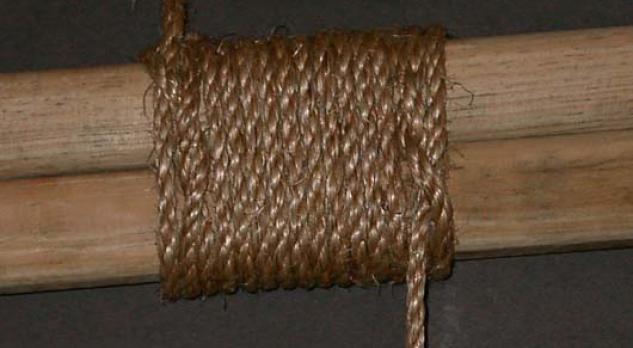 Materials: Two spars, 15 - 20 feet (6.1 m) of rope.